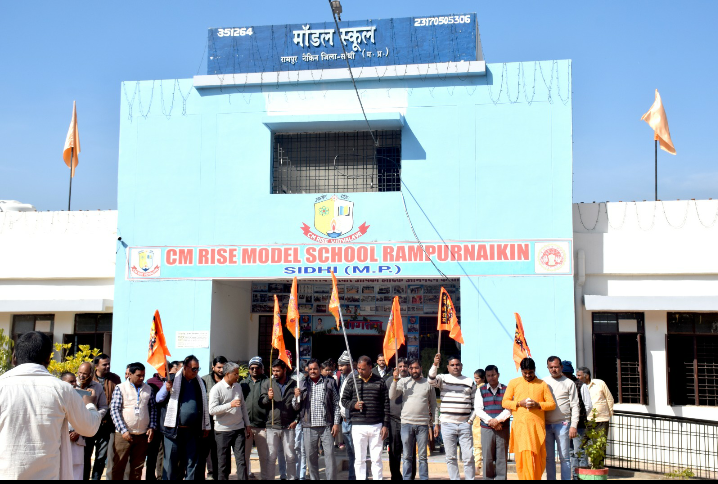 प्रभु श्रीराम जी के भव्य,दिव्य मंदिर में प्राण प्रतिष्ठा के ऐतिहासिक क्षण में सी.एम.राइज मॉडल स्कूल रामपुर नैकिन में रामोत्सव कार्यक्रम बड़े ही उत्साहपूर्ण वातावरण में संपन्न हुआ जिसमें क्षेत्र के जनप्रतिनिधि एवं अधिकारी,कर्मचारी गण सम्मिलित हुए और विद्यालय व्दारा आयोजित इस ऐतिहासिक क्षण में प्रभु की स्तुति की,आयोजित कार्यक्रम में छात्र/छात्राओं ने प्रभु आयोध्या आगमन पर रंगोली, गीत,भजन, स्तुति, रामधुन के साथ आरती की एवं स्थानीय स्तर पर वार्ड 07 में शंखनाद के साथ फेरी कर पूरे क्षेत्र का वातावरण भक्तिमय वातावरण में बदल दिया उत्साहित लोगो ने जय श्री राम के नारों के साथ छात्रों का जगह जगह उत्साह बढ़ाया इस गरिमामयी आयोजन में श्री नितिन झोड़ तहसीलदार ,नगर परिषद के अध्यक्ष रामकुमार साहू,मंडल अध्यक्ष गजेंद्र सिंह,भारतीय मजदूर संघ के जिलाध्यक्ष आनंद तिवारी नगर परिषद के निर्माण सभापति अध्यक्ष नागेंद्र सिंह रिंकू,मथुरा प्रसाद गुप्ता ,रजऊ मिश्रा मुख्य नगर परिषद अधिकारी श्री लालजी तिवारी, इंजीनियर साहब,के साथ साथ समस्त नगर परिषद के कर्मचारीगण,पंचमुख विद्यालय के प्राचार्य बी.जी.तिवारी, जनशिक्षक बाला प्रसाद तिवारी, यूनियन बैंक के मैंनेजर साहब,विनोद सिंह (पूर्व पार्षद)मुनि विश्वकर्मा,पं.दीनदयाल योग संस्थान दिल्ली से पहुँचे योग प्रशिक्षक कुश सिंह गहरवार ,योगी जी, विकास खंड योग प्रभारी कमलेश मिश्रा एवं अभिभावक गण उपस्थित रहें विद्यालय की ओर से प्राचार्य जी ने सभी अतिथियों का अपने परिसर में स्वागत कर इस शुभ अवसर की शुभकामना दी और साथ ही छात्रों के व्दारा 1551 (एक हजार पांच सौ इक्यावन ) दीप प्रज्जलित दीप माला पर प्रकाश डालते हुए प्रभु श्री राम जी के व्यक्तित्व पर उदबोधन दिया,तहसीलदार साहब जी ने छात्रों के व्दारा प्रस्तुति कार्यक्रम की सराहना करते हुए अपनी शुभकामना दी इस रामोत्सव मे समस्त विद्यालय परिवार ने बड़े उत्साह के साथ अपनी सहभागिता की,अंत मे आतिशबाजी के साथ प्रसाद वितरण उपरांत कार्यक्रम सम्पन्न हुआ।
