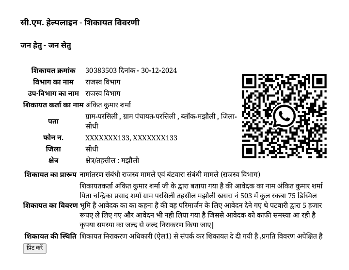 वहीं सीधी जिले के मझौली विकासखंड अंतर्गत ग्राम पंचायत परसली निवासी अंकित कुमार शर्मा ने अपने पटवारी हल्का परसली के पटवारी लाल बहादुर सिंह के ऊपर घर में जाकर₹5000 लेने का आरोप लगाया है.