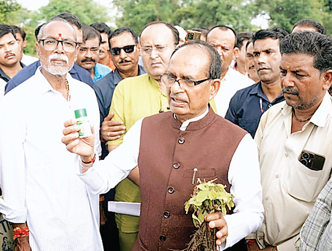 केंद्रीय कृषि मंत्री चौहान ने किया रायसेन स्थित खेत का औचक निरीक्षण