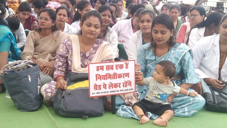 छत्तीसगढ़ प्रदेश एनएचएम कर्मचारी संघ के नेताओं में से एक हेमंत कुमार सिन्हा ने अखबार को बताया, ‘मुझे कई बार सेवा से बर्खास्त किया गया है. हमारी 10 मांगें हैं, और हमारी सबसे बड़ी मांग नियमितीकरण या अन्य नियमित स्वास्थ्य कर्मियों की तरह ग्रेड पे है. दूसरी, हम उचित वेतन वृद्धि, स्वास्थ्य विभाग के नियमित कर्मचारियों की तरह स्वास्थ्य बीमा पर कैशलेस लाभ, चिकित्सा अवकाश के दौरान समयबद्ध वेतन और एक उचित स्थानांतरण नीति चाहते हैं.’