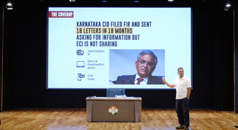गांधी ने दावा किया कि पिछले 18 महीनों में कर्नाटक की सीआईडी ने चुनाव आयोग को 18 पत्र लिखकर उन डिवाइस की आईपी एड्रेस मांगी, जिससे आवेदन किया गया था. साथ ही ओटीपी ट्रेल की डिटेल मांगी गई, लेकिन चुनाव आयोग ने कोई जानकारी नहीं दी. ‘अगर ये डिटेल सामने आ जाएं, तो पता चल जाएगा कि यह ऑपरेशन कहां से चल रहा है. चुनाव आयोग यह जानता है, लेकिन जानकारी साझा नहीं कर रहा.’
