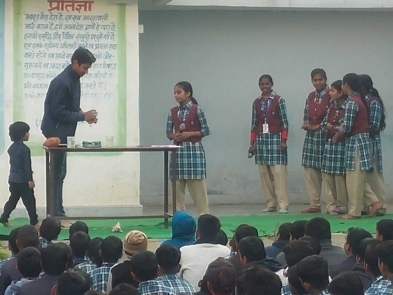 मंगल भारत.सीधी.जिसमें छात्र/छात्राओं के व्दारा गाँव मे फैली कुरूतियों के माध्यम से लोगो को किस प्रकार भ्रमित किया जाता है जबकि वह विज्ञान के कारण होता है के माध्यम से जागरूक किया गया विभिन्न प्रकार के छोटे छोटे कैमिकल का प्रयोग कर के छात्रों ने प्रयोग के माध्यम से जागरूक किया वही मंचन कर बैज्ञानिकों के व्दारा प्रयोग कर अनेक प्रयोगों को कर के उपस्थिति छात्रों एवं लोगो को आनंद से आंनदित किया प्राचार्य बद्री प्रसाद त्रिपाठी ने अपने उदबोधन में छात्रों को प्रेरित करते हुए कहा कि आज विज्ञान का समय है.