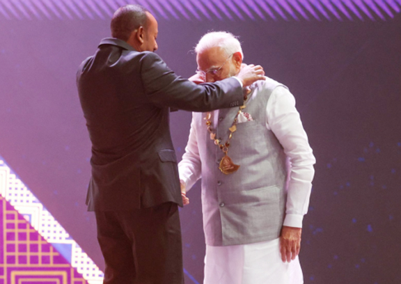 दौरान वहां का सर्वोच्च नागरिक सम्मान ‘ग्रेट ऑनर निशान ऑफ इथियोपिया’ से सम्मानित किया गया। इस बात केंद्रीय गृह मंत्री अमित शाह ने अपनी प्रतिक्रिया देते हुए इसे हर भारतीय के लिए गर्व का पल बताया। शाह ने कहा कि प्रधानमंत्री नरेंद्र मोदी को इथियोपिया का सर्वोच्च नागरिक सम्मान ‘ग्रेट ऑनर निशान ऑफ इथियोपिया’ मिलना भारत-इथियोपिया रिश्तों के लिए एक ऐतिहासिक उपलब्धि है। यह सम्मान इथियोपिया के प्रधानमंत्री डॉ. अबी अहमद अली ने पीएम मोदी को दिया।