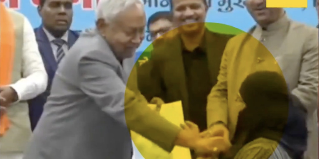 टाइम्स ऑफ इंडिया की रिपोर्ट के मुताबिक, इल्तिजा ने मामले से संबंधित वायरल वीडियो का हवाला देते हुए यह शिकायत दर्ज कराई है, जिसमें नीतीश कुमार कथित तौर पर सचिवालय में नियुक्ति पत्र प्राप्त करने आईं एक आयुष चिकित्सक का नकाब नीचे खिंचते हुए दिखाई दे रहे है.