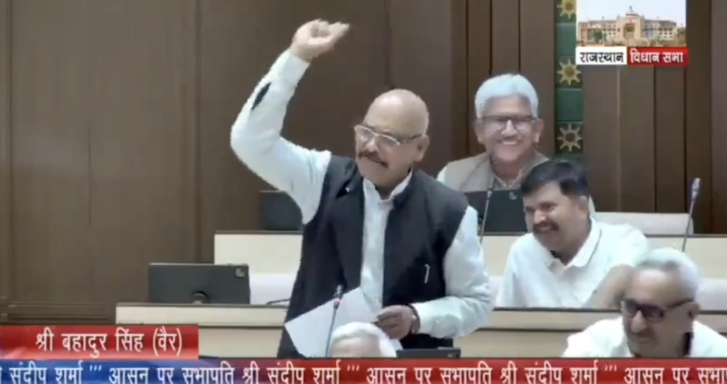 राजस्थान विधानसभा में भाजपा विधायक बहादुर सिंह कोली. (फोटो: X/@IYC वीडियो स्क्रीनशॉट)